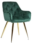 Krzesło fotelowe z podłokietnikami AURORA | zielony welur, złote nogi