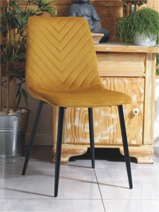 Welurowe Krzesło do jadalni TRIBAL miodowe na czarnych masywnych nogach