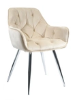Krzesło fotelowe z podłokietnikami AURORA | beżowy welur, chromowane nogi, pikowana tapicerka