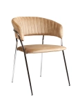 Pikowane krzesło z marszczeniami AURORA ciemny beż ze srebrnymi nogami