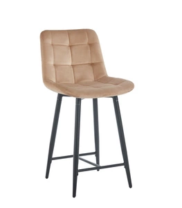 Welurowe krzesło do wyspy niskie PROXI pikowane ciemny beż na czarnych nogach