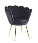 Fotel muszelka SHELL | czarny welur, złote nogi