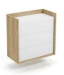 Komoda MOBIUS 3S w kolorze hikora naturalna z frontami w bieli alpejskiej to elegancka opcja do każdego wnętrza. Wykonana z wysokiej jakości płyty meblowej, z systemem push-click, idealna do przechowywania drobiazgów w stylowy sposób.