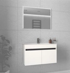 Lustro AVIOLA 80 cm z oświetleniem LED w kolorze dąb artisan to elegancka i funkcjonalna opcja do łazienki, oferująca nowoczesne oświetlenie LED oraz stylowy wygląd.