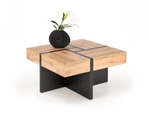 Elegancka ława SEVILLA z blatem w kolorze dąb craft i nogami w czarnym macie. Wykonana z płyty meblowej okleinowanej, z praktycznymi szufladami pod blatem. Idealna do salonu, biura czy pokoju dziennego.