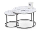 Zestaw dwóch ław PAOLA, idealny do nowoczesnych wnętrz. Blaty z MDF okleinowanego imitującego marmur, podstawa ze stali malowanej proszkowo w kolorze srebrnym. Perfekcyjne połączenie stylu i funkcjonalności dla Twojego salonu, sypialni czy biura.
