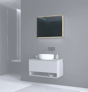 Lustro AVIOLA 80 cm z oświetleniem LED w kolorze dąb artisan to elegancka i funkcjonalna opcja do łazienki, oferująca nowoczesne oświetlenie LED oraz stylowy wygląd.
