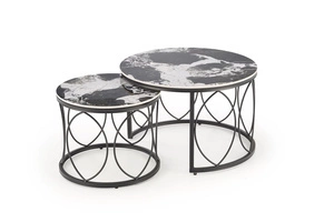 Zestaw 2 ław ALEXANDRA z blatem z czarnego marmuru i czarnym stelażem