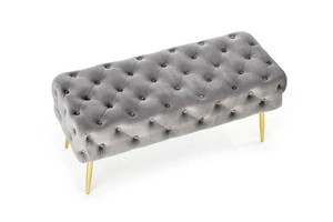 Ławka ATHENA tapicerowana aksamitną tkaniną w kolorze popielatym z chromowanymi złotymi nogami to stylowy mebel. Świetnie sprawdzi się zarówno w salonie, sypialni, przedpokoju, jak i garderobie, dodając wnętrzu szyku i elegancji.
