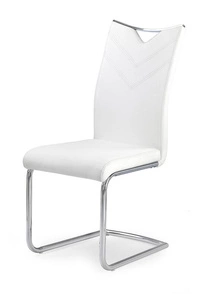 Krzesło K224 w kolorze białym to połączenie elegancji i funkcjonalności. Tapicerowane miękką ekoskórą i oparte na chromowanej podstawie, stanowi stylowy element wnętrza, który doskonale sprawdzi się w jadalni, kuchni lub salonie.