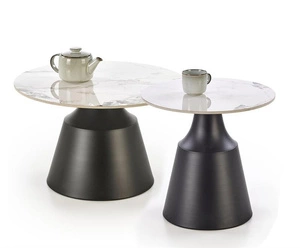 Zestaw dwóch ław MAGNETA w wykończeniu biały marmur/czarny to eleganckie i nowoczesne rozwiązanie do salonu. Blaty ze spieku oraz czarna stalowa podstawa tworzą trwały i stylowy komplet.