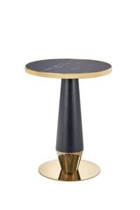 Okrągły stół MOLINA, czarny marmur z czarną podstawą i złotymi akcentami