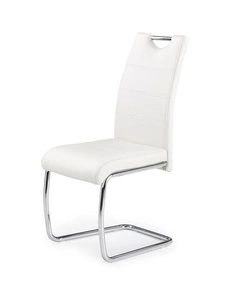 Krzesło K211 w kolorze białym to połączenie elegancji i wygody. Tapicerowane wysokiej jakości ekoskórą i oparte na stabilnej, chromowanej podstawie, doskonale uzupełni nowoczesne wnętrza jadalni, salonu lub kuchni.