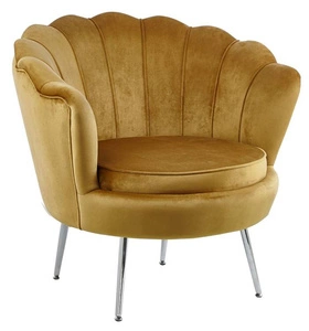 Welurowy fotel muszelka VIDAL | miodowa tapicerka, srebrne nóżki