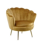 Welurowy fotel muszelka VIDAL | miodowa tapicerka, złote nóżki