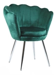 Fotel muszelka SHELL | welur butelkowa zieleń, chromowane nogi