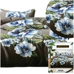 Pościel w niebieskie kwiaty160 x 200 3cz Satynowa Dalwin 1087