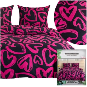 Pościel w różowe serca 160 x 200 3cz Satynowa Maria 3018
