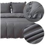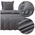 Pościel Bawełniana z Falbaną Lynda 04, 160x200 cm, 3 części, bawełna, zamek błyskawiczny, odcienie szarości i srebrnego.