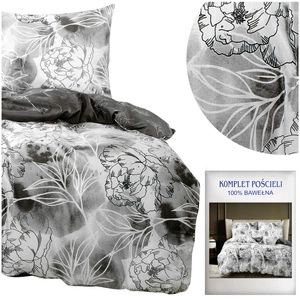 Pościel Satyna Bawełniana nr A1773, 160x200 cm, 3 części, w odcieniach szarości i srebra. Zamek błyskawiczny, gramatura 110 g/m².