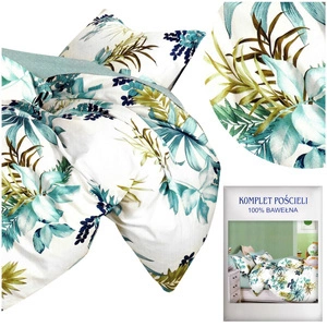 Pościel Naomi 06 160x200 cm w odcieniach zieleni. Zestaw 3-elementowy z poszewkami 70x80 cm, wykonany z satyny bawełnianej. Zamek błyskawiczny i elegancka falbana.