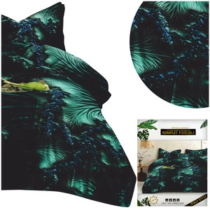Pościel satynowa Dalwin 934, rozmiar 160x200 cm, 3 części: poszwa 160x200 cm, 2 poszewki 70x80 cm. Kolor: odcienie czarnego i zieleni. Zamek błyskawiczny.