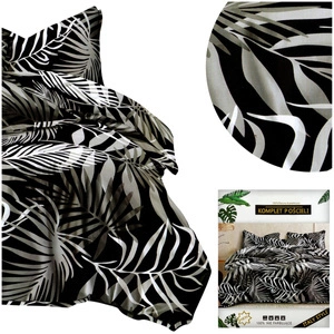 Pościel 160x200 cm w odcieniach czarnego i białego, wykonana z satyny bawełnianej, z zamkiem błyskawicznym. Zestaw 4 części, w tym tradycyjne prześcieradło 180x230 cm.