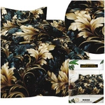 Pościel satynowa Dalwin 987 (200x220 cm) w odcieniach czerni, żółci i złota, wykonana z wysokiej jakości satyny bawełnianej (75 g/m²). Zestaw 3-częściowy: poszwa na kołdrę i 2 poszewki (70x80 cm). Miękka, trwała, z zamkiem błyskawicznym.