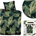 Pościel Satynowa Dalwin 860 (140x200 cm) z satyny bawełnianej w odcieniach zieleni, żółtego i złotego. Zamek błyskawiczny, zestaw 2 części: poszwa 140x200 cm i dwie poszewki 70x80 cm. Pranie do 30°C, bez wirowania.
