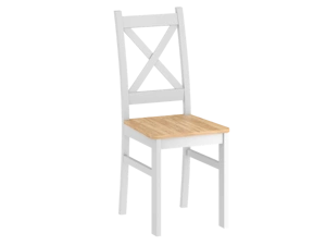 Krzesło drewniane z drewnianym siedziskiem CARO białe / dąb złoty craft