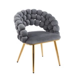 Welurowy hoker glamour ROSA 4 z szarą plecionką i złotym stelażem