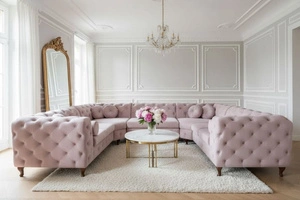 Narożnik MOMOA w kształcie litery U to kwintesencja stylu glamour i chesterfieldowej elegancji. Wyjątkowe pikowania, klasyczna forma i ergonomiczne siedzisko tworzą luksusowy mebel, który zachwyca wyglądem i zapewnia najwyższy komfort codziennego wypoczyn