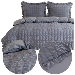 Pościel z kory z falbaną szara 160 x 200 3cz Gavin 04