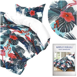 Pościel Satyna Bawełniana Flamingi Dwustronna A1148 200x220NP 3 części