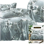Pościel satynowa Dalwin 1087 w kwiaty to elegancki komplet w odcieniach szarości, srebra i niebieskiego. Wykonana z miękkiej i przewiewnej satyny bawełnianej (75 g/m²). Zestaw obejmuje poszwę 200x220 cm i dwie poszewki 70x80 cm, zapinane na zamek.