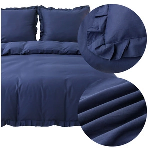 Pościel z kory z falbaną granatowa 160 x 200 3cz Gavin 01