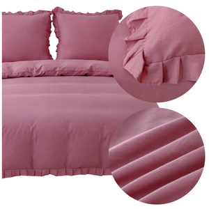 Pościel Bawełniana z Falbaną Lynda 05, 160x200 cm, 3 części, bawełna, zamek błyskawiczny, odcienie różowego.