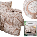 Pościel Satynowa Dalwin 964, 4-częściowa, satyna bawełniana (75 g/m²). Poszwa 160x200 cm, 2 poszewki 70x80 cm, prześcieradło 180x230 cm. Zamek błyskawiczny, odcienie brązowego, żółtego i złotego. Komfort i elegancja w Twojej sypialni.