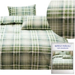 Pościel 200x220 cm z falbaną, satyna bawełniana w odcieniach zieleni. Zamek błyskawiczny, 3-elementowy zestaw z poszewką 70x80 cm.