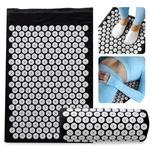 Mata do akupresury 65x40 cm z poduszką redukuje napięcie mięśniowe, poprawia krążenie i łagodzi ból. Wyposażona w kolce zapewniające skuteczny masaż. Idealna do relaksu i rehabilitacji. Kolor: odcienie czarnego. Grubość: 2 cm.