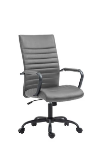 Fotel biurowy DORIAN to połączenie elegancji i funkcjonalności. Szary kolor ekoskóry harmonizuje z czarnym stelażem na kółkach, tworząc nowoczesny design. Wyposażony w podłokietniki i mechanizm tilt, ten fotel zapewnia komfort podczas pracy.
