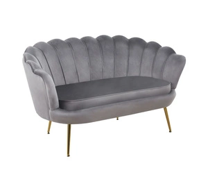 Sofa VIDAL w szarym welurze ze złotymi elementami