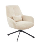 Fotel FELTRO w beżowej tkaninie to stylowy i komfortowy mebel z obrotowym siedziskiem 360°, idealny do nowoczesnych wnętrz. Wyposażony w dekoracyjną poduszkę i stabilną, czarną podstawę z metalu.