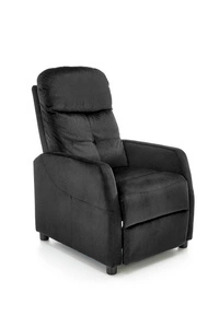Fotel FELIPE 2 stworzony z delikatnej tkaniny velvet o intensywnym czarnym odcieniu (BLUVEL 19), wyposażony w funkcję rozkładaną. Elegancki i komfortowy, pasujący do każdego wystroju wnętrza.