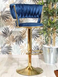 Krzesło barowe w stylu glamour MARGO granatowy welur /złoty