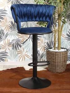 Welurowe krzesło barowe loft ROSA 3 | granatowa plecionka, czarny stelaż