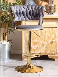 Welurowe krzesło barowe glamour ROSA 3 | szara plecionka, złoty stelaż