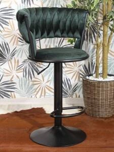Welurowe krzesło barowe do wyspy ROSA 3 | zielona plecionka, czarny stelaż
