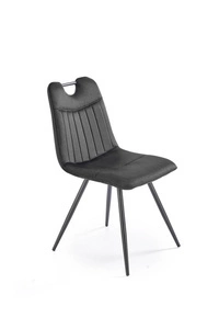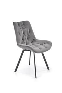 Krzesło K473 wykonane z tkaniny velvet w kolorze popielatym i czarnych stalowych nóg. Geometryczna forma nóg podkreśla jego współczesny charakter, nadając wnętrzu wyjątkowy, loftowy styl. Idealne zarówno do salonu, jadalni, jak i przestrzeni biurowej.