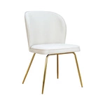 Krzesło w beżowym velvecie (BLUVEL 40) z chromowaną, złotą podstawą oferuje nowoczesny styl i wyjątkowy komfort. Idealne do salonu, jadalni i przestrzeni komercyjnych, dodaje wnętrzom subtelnej elegancji i luksusu.